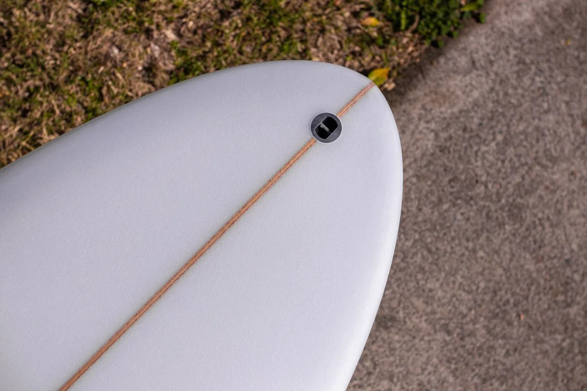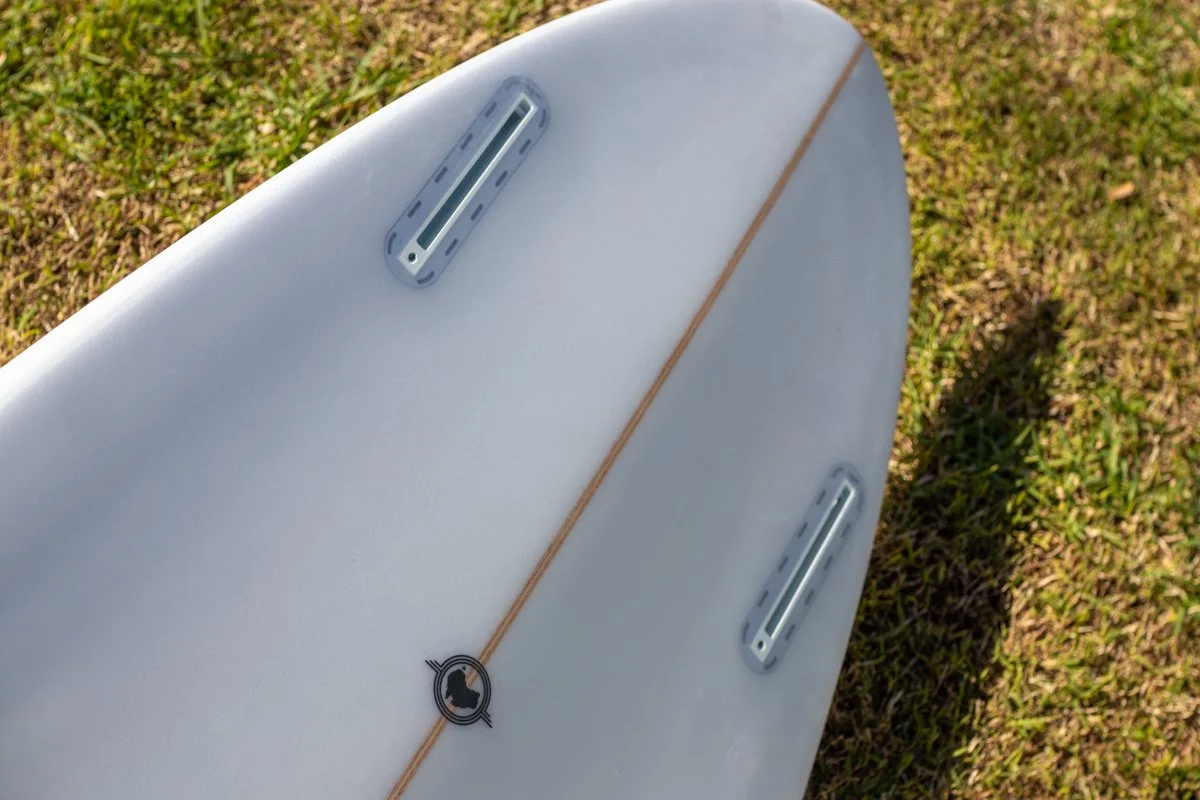 The Bee Sting is a great learner board/twin enthusiast/point or river mouth paddle machine and an all-around fun board. It suits the Mid-length twins people have been getting into. It works with up-right twins for snappier surfing in shorter length waves, keels for waves that have room to move, and we could go twinzer. A single fin box option would be another great option.