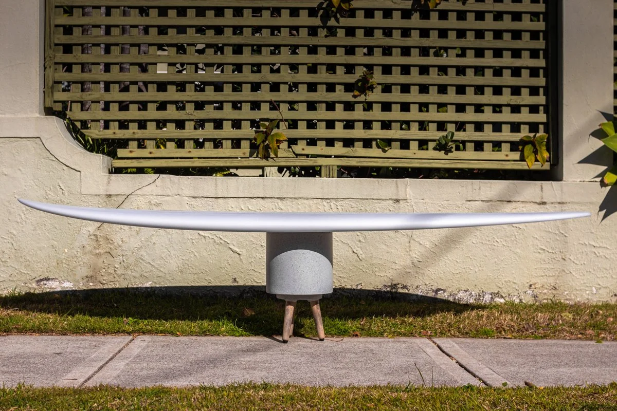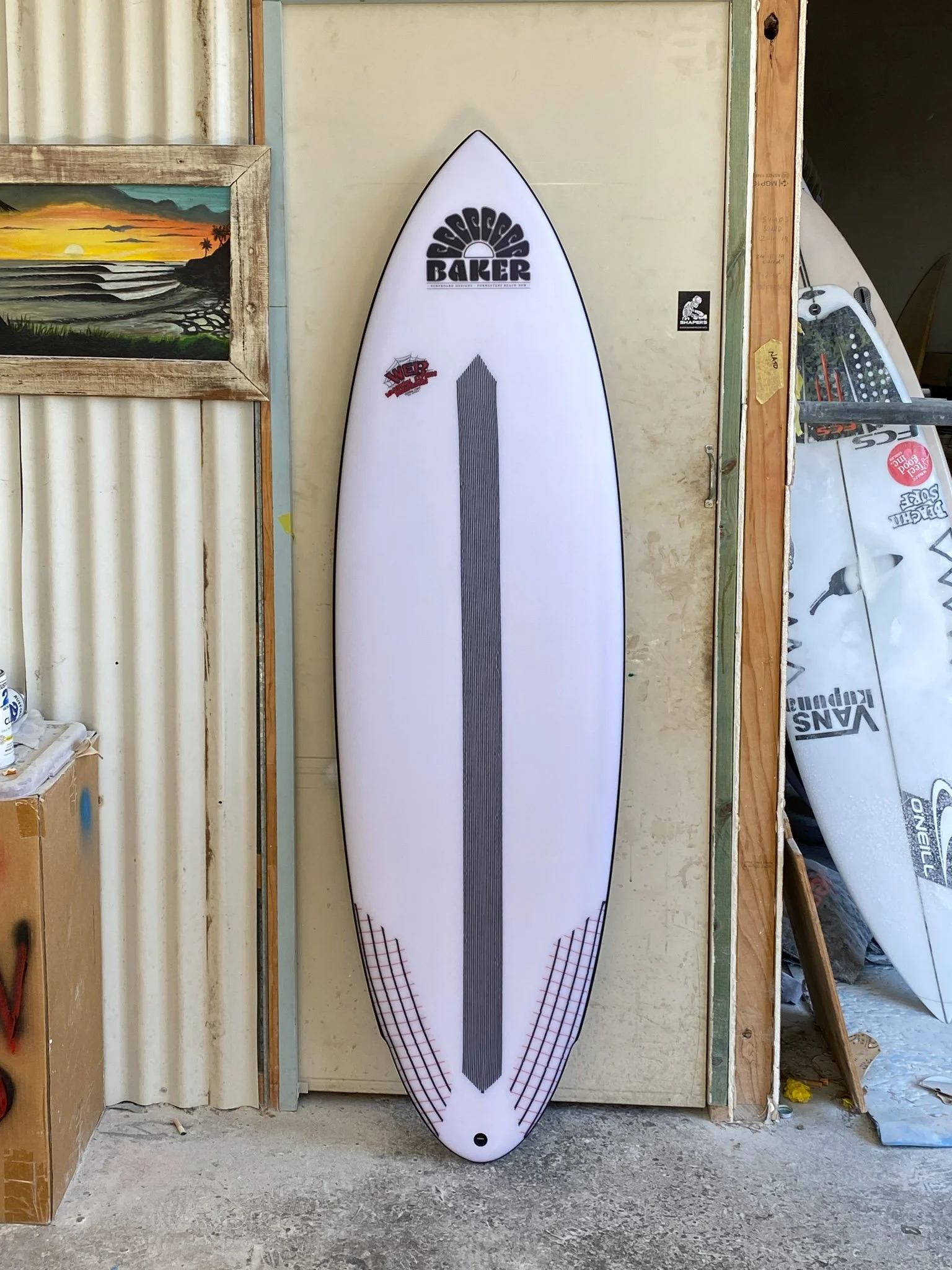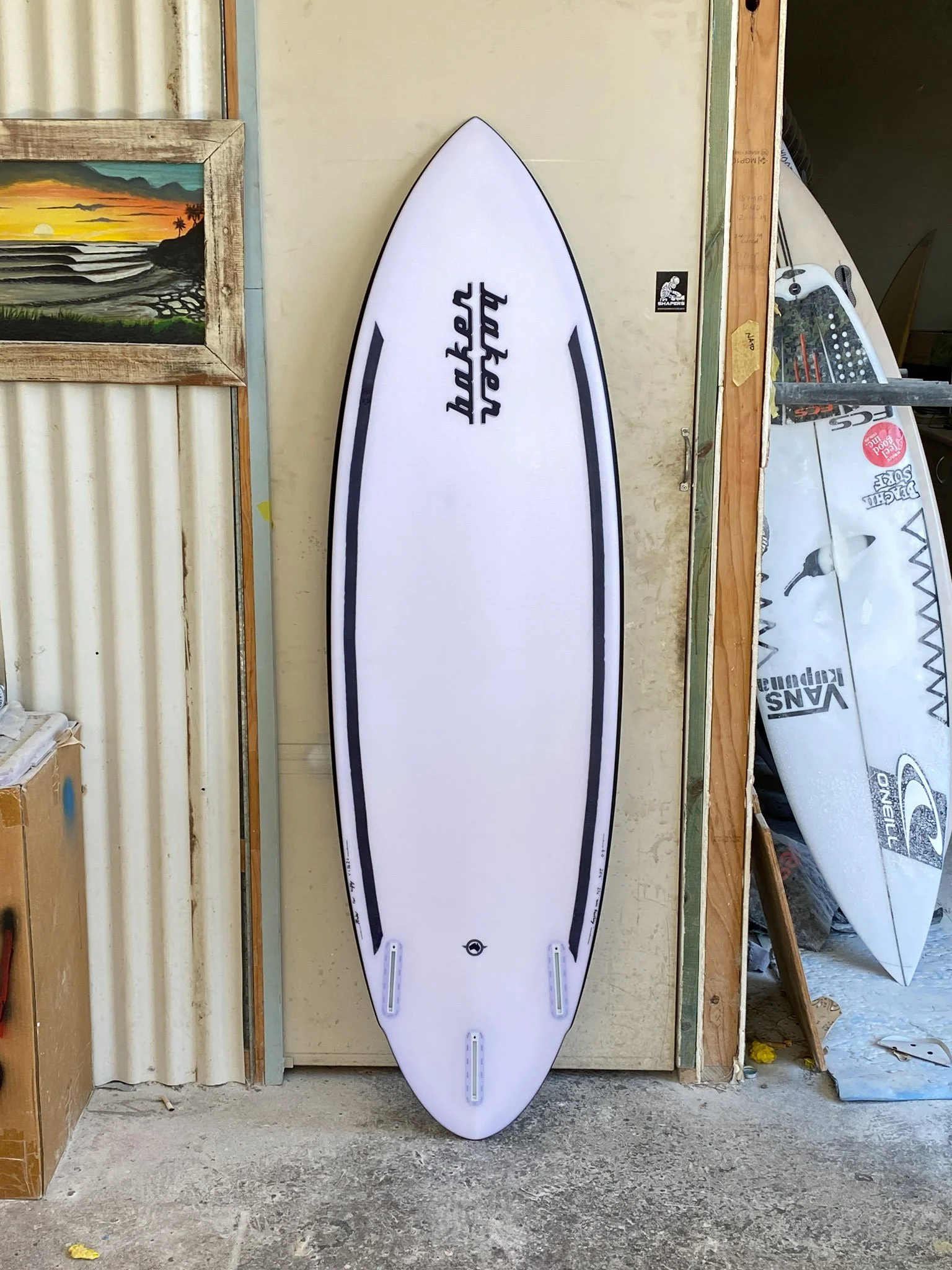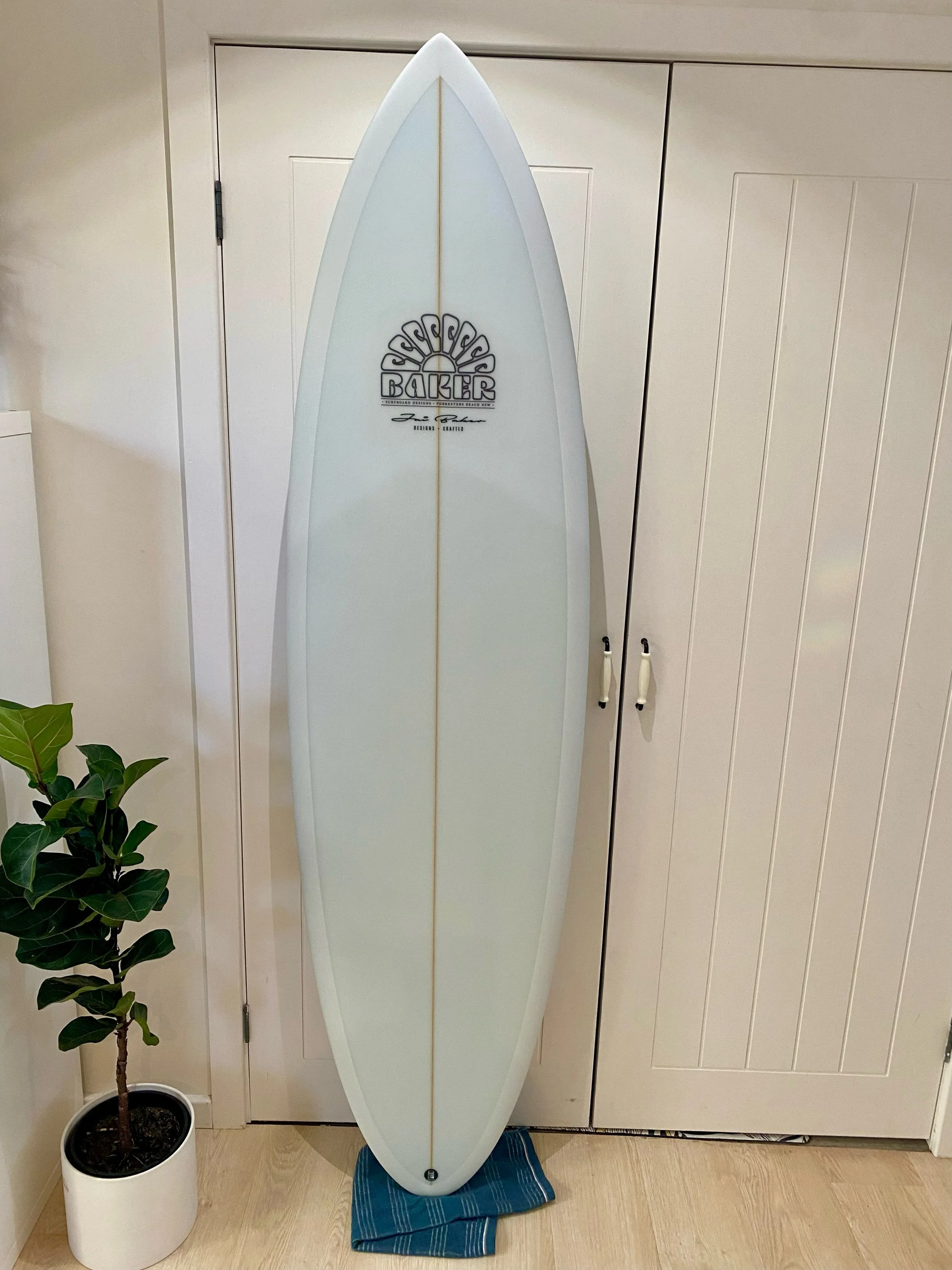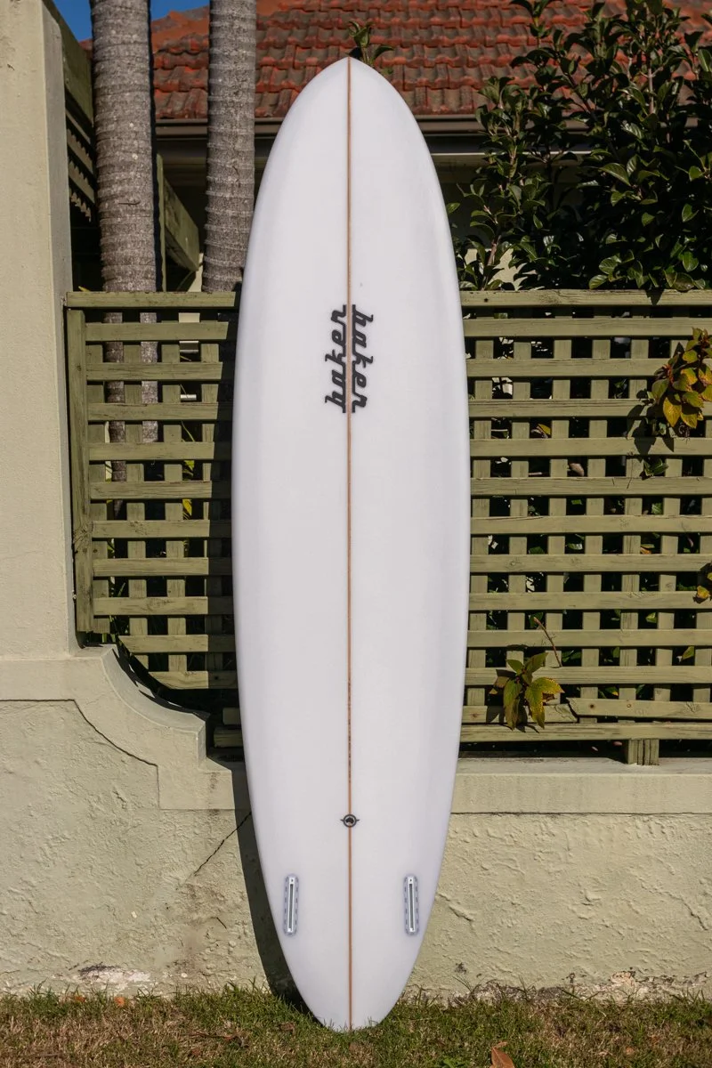 A shrunken version of the mid-length. Has the same glide and smooth rail to rail transition but and added piece of performance in the mix. The one pictured is 6’0 by 19 1/4 by 2 11/16 at 32L. A step down from a 6’8 (19 1/2 by 2 11/16) mid-length at 36L.